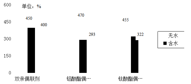 圖2.2 不同偶聯(lián)劑改性無水和含水重鈣對樹脂膜斷裂伸長率的影響